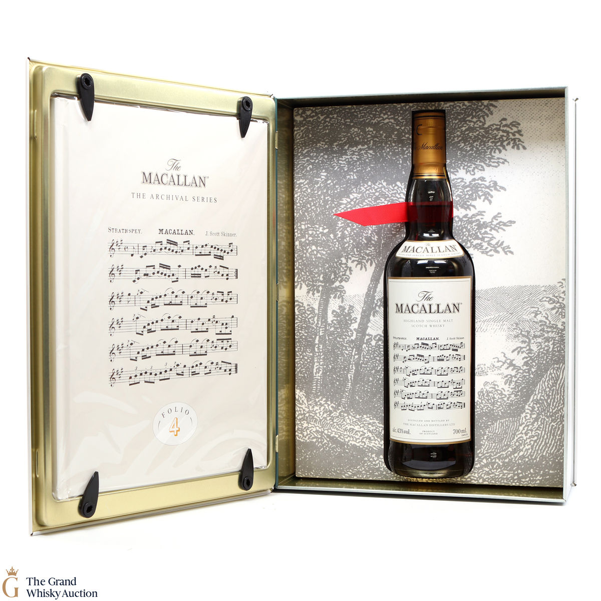 The fourth edition in the Archival Series from The Macallan. Folio 4 remembers the legendary advertising campaigns of the 1970s, 1980s and 1990s that brought The Macallan to the public’s attention outside of Scotland. It is presented in a beautiful book shaped, tin case. It features an advertisement including a Strathspey composed by James Scott Skinner (1843-1927). The advert notes that Skinner was so moved by his favourite malt he created a unique piece of music featuring his signature lilting notes with the simple catchphrase: “The Macallan. The Malt.”
