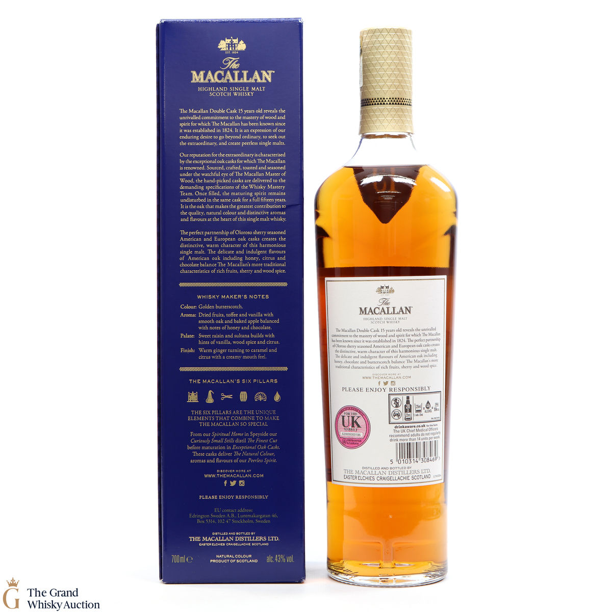 This 15 Year Old Macallan was matured in a combination of American and European Sherry oak for a minimum of 15 years. It is part of the Macallan Double Cask range, which marries the classic Macallan style and the sweetness of American oak.