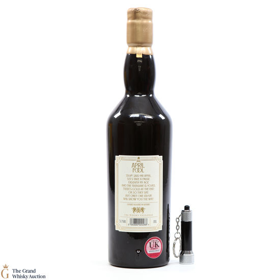 This fun and unique bottle was designed by Raj Chavanda, creative director at The Whisky Exchange who wanted to encapsulate the fun and foolery of April Fools’ day. This lot includes a small UV light to reveal the hidden messages on the bottle. This is one of only 869 bottles produced.