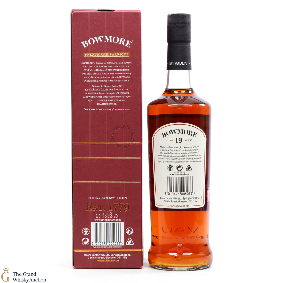 Due to the various ages of bottles and their seals, the condition of liquid is at the buyer's discretion and no claim can be lodged against failure/leakage in transit. Loss and breakage cover is available at 3% of the hammer price as standard. If the lot is not insured, no claim can be lodged against the courier or The Grand Whisky Auction for breakage or loss in transit.