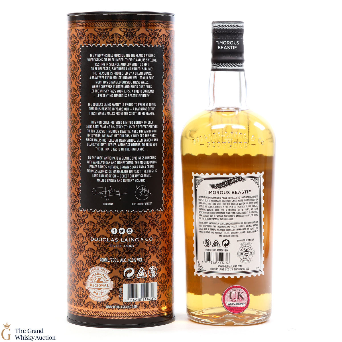 The Timorous Beastie 18 year old is a Highland blended malt Scotch whisky which has been bottled at 46.8% ABV.
