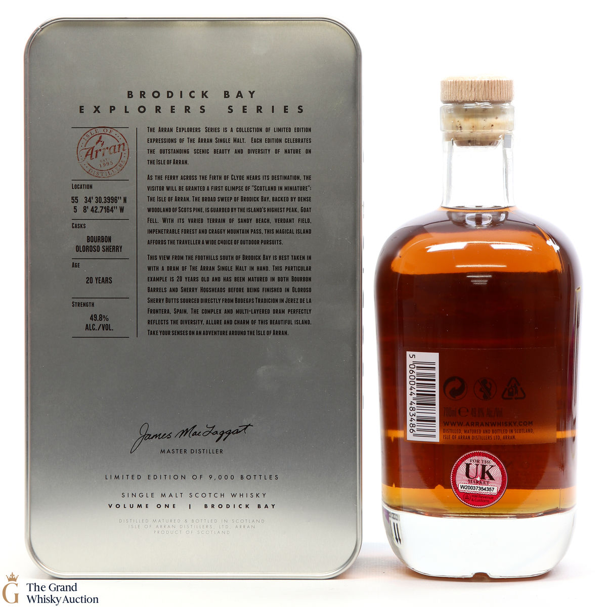 The presentation tin and the bottle label features a beautiful view from the foothills south of Brodick Bay. This is one of 9000 bottles.
