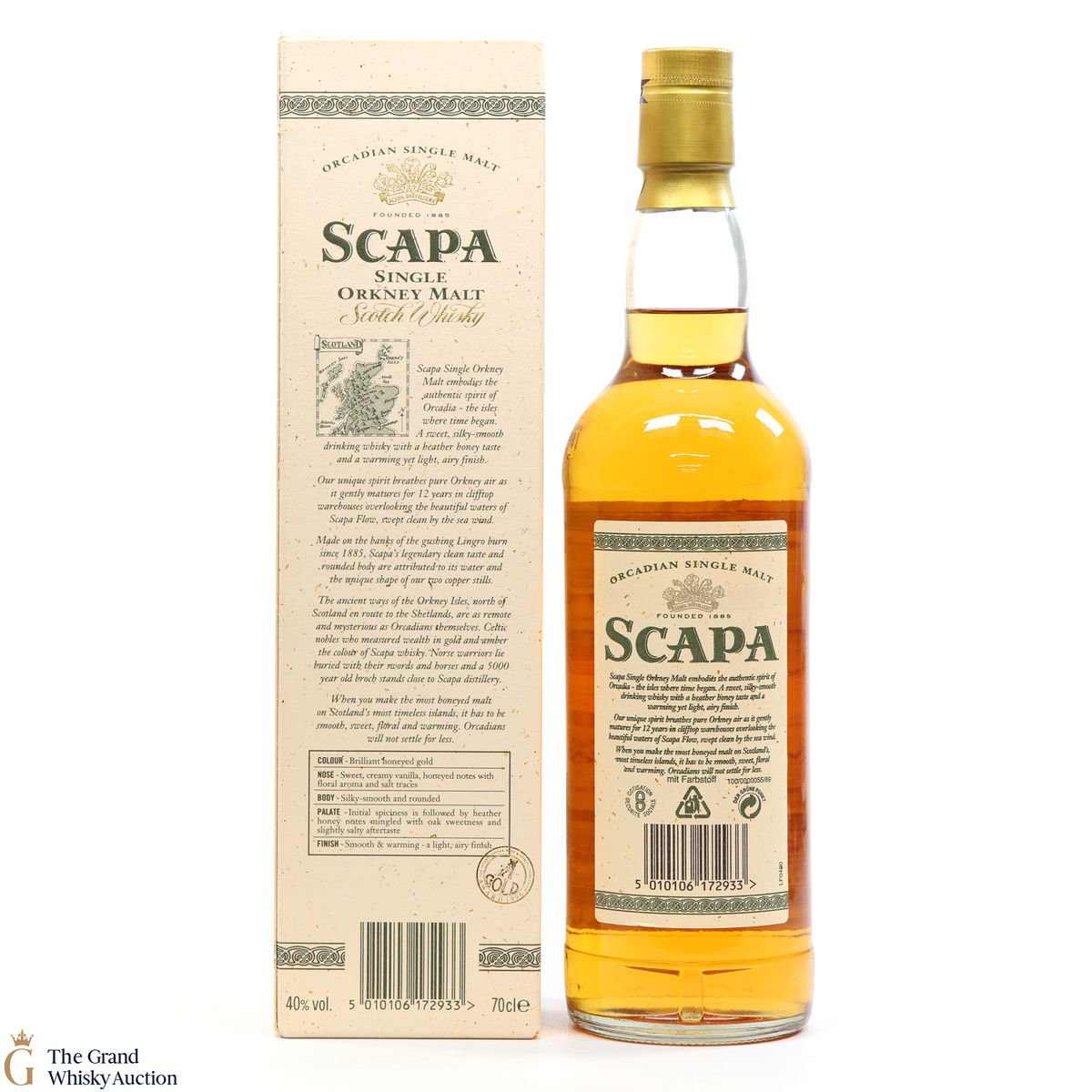 A long discontinued 12 Year Old from the Scapa Distillery in Orkney. It was matured for 12 years in clifftop warehouses overlooking the beautiful waters of the Scapa Flow.