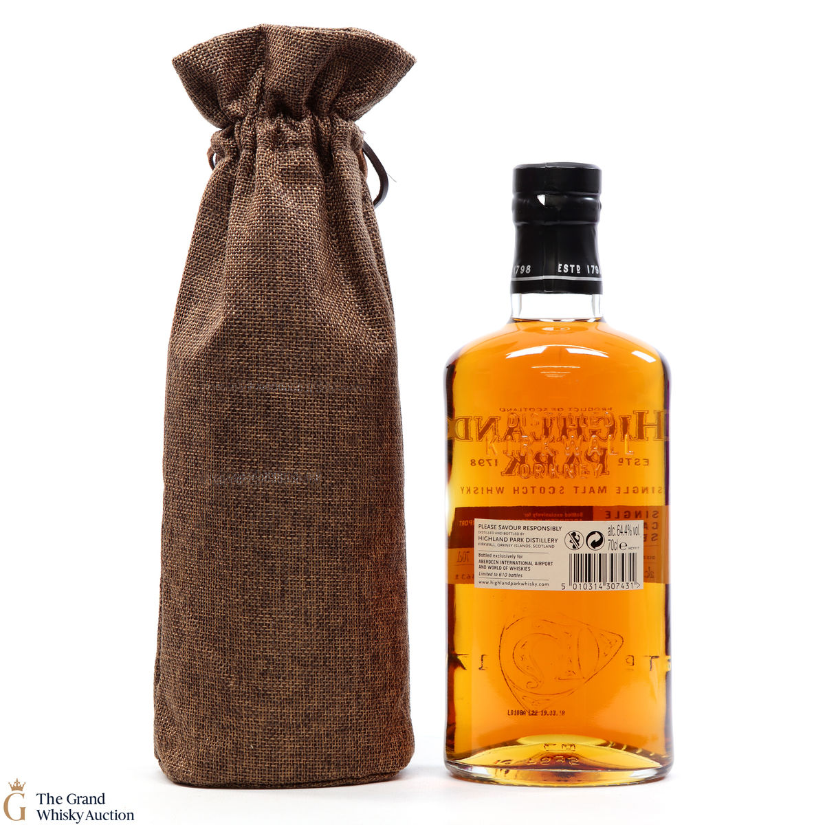This Highland Park Single Cask Edition was bottled in 2018 exclusively for Aberdeen International Airport and World of Whiskies. With just 610 bottles available, the 12-year-old single malt whisky is drawn from an intriguing mix of American/Spanish oak cask and bottled at a cask strength 64.4% ABV.