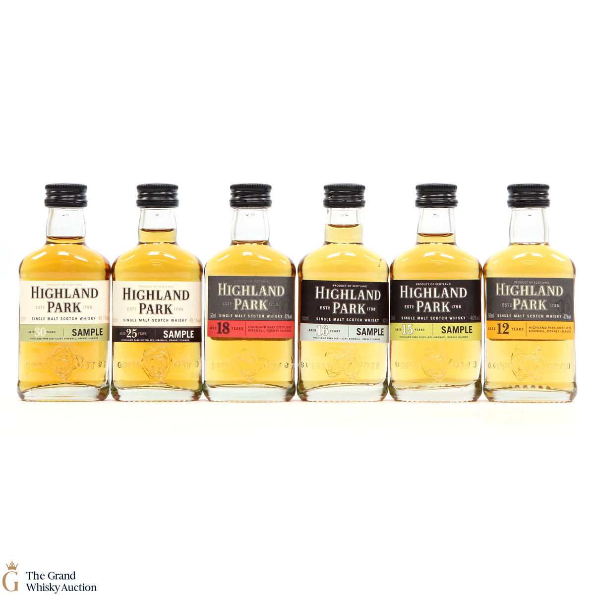 This incredibly interesting and unique lot comes from Highland Park Distillery in Orkney. This box was used by Highland Park Ambassadors to take to promotions and sales events to display the products they had to offer. Held in a large wooden box is: