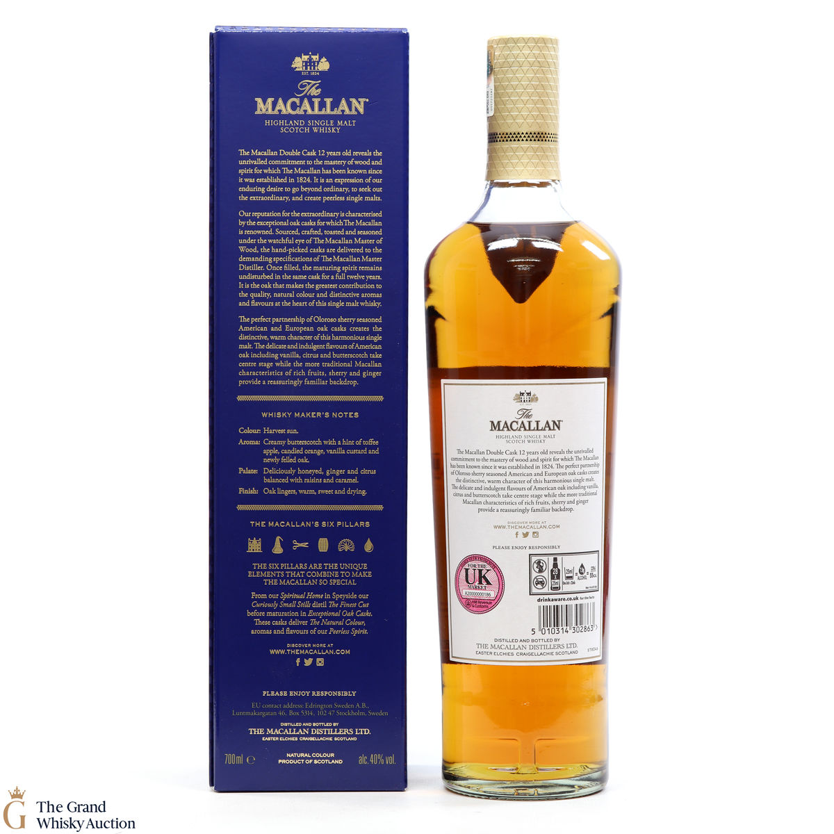This 12 Year Old Macallan was matured in a combination of American and European Sherry oak for a minimum of 12 years. It is part of the Macallan Double Cask range, which marries the classic Macallan style and the sweetness of American oak.