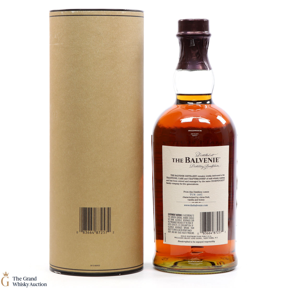 Seven traditional whisky casks & two sherry butts were hand-selected by Malt Master David Stewart from Warehouse 24 at Balvenie Distillery to make Tun 1401 Batch 6. They were combined and rested for several months in Tun 1401 – The Balvenie’s traditional oak marrying vessel.