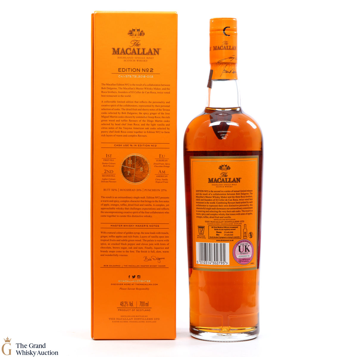 This is the second release from the Macallan Edition series. Edition No.2 is a collaboration between Macallan's master blender Bob Delgarno and legendary Spanish chefs Joan, Josep and Jordi Roca. The Rocas are the three brothers behind El Celler de Can Roca (named Best Restaurant in the World twice by Restaurant magazine). This single malt was drawn from a combination of sherry puncheons, butts and refill hogsheads.