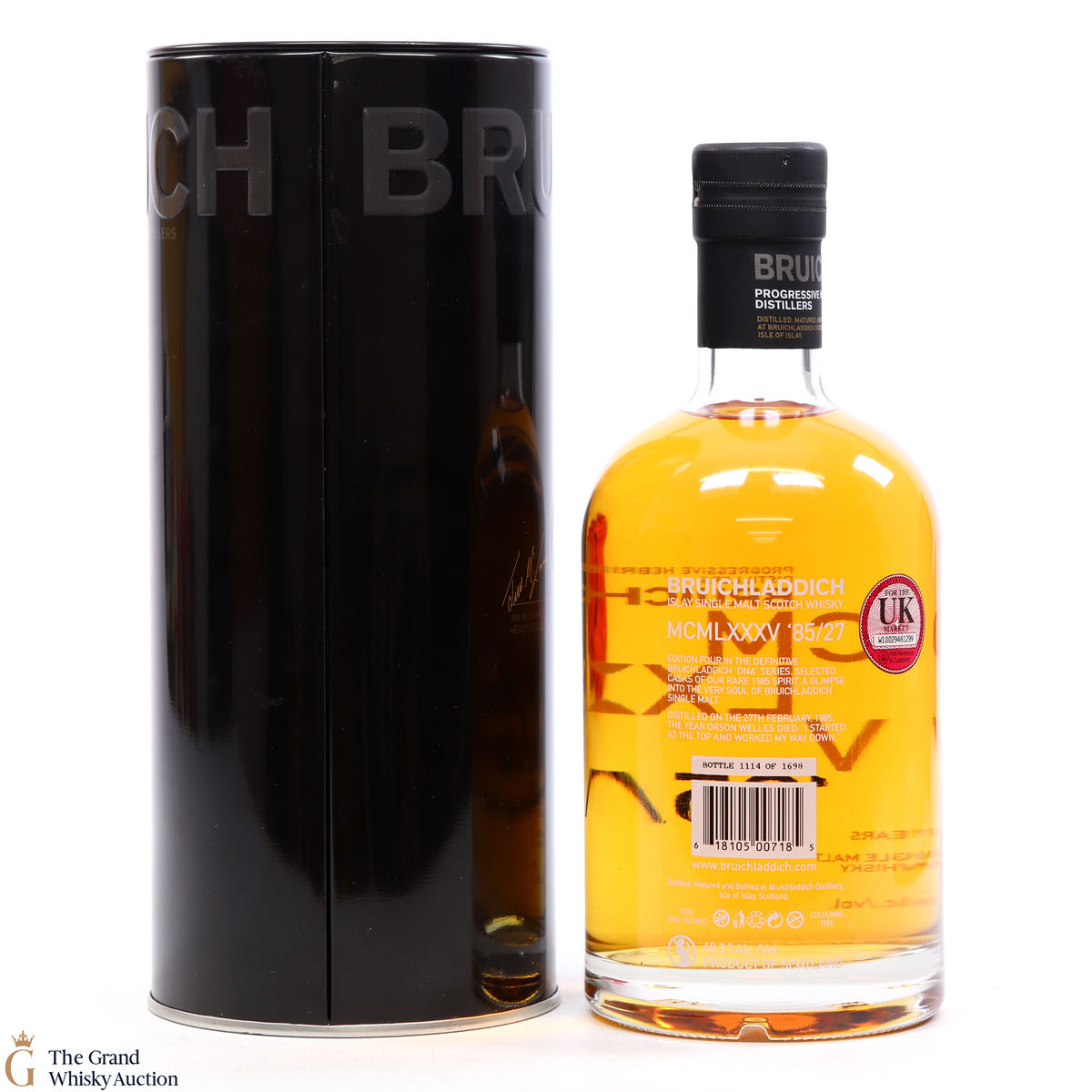 This bottle is edition 4 from the DNA series released by Bruichladdich. It was distilled on the 27th Feburary 1985 and left to then mature before being bottled 27 years later.