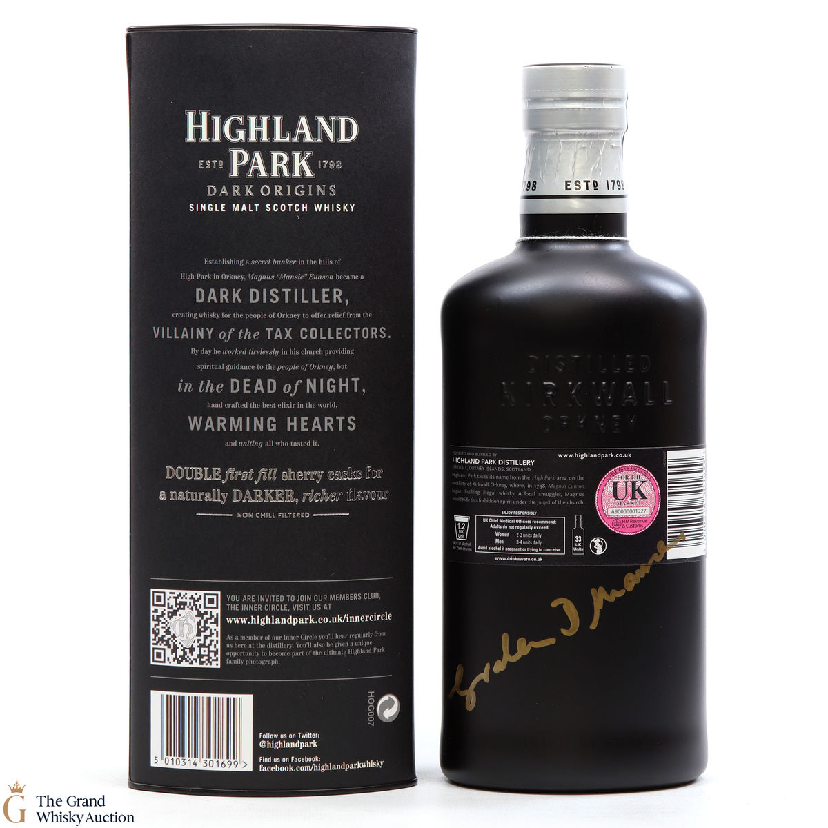 Highland Park Dark Origins is core bottling that celebrates the early days of Magnus Eunson's illicit distilling on Orkney, back before the distillery was even founded in 1798. Magnus worked as a butcher and church official by day, but by night he was a legendary whisky smuggler and distiller outwitting the exciseman.