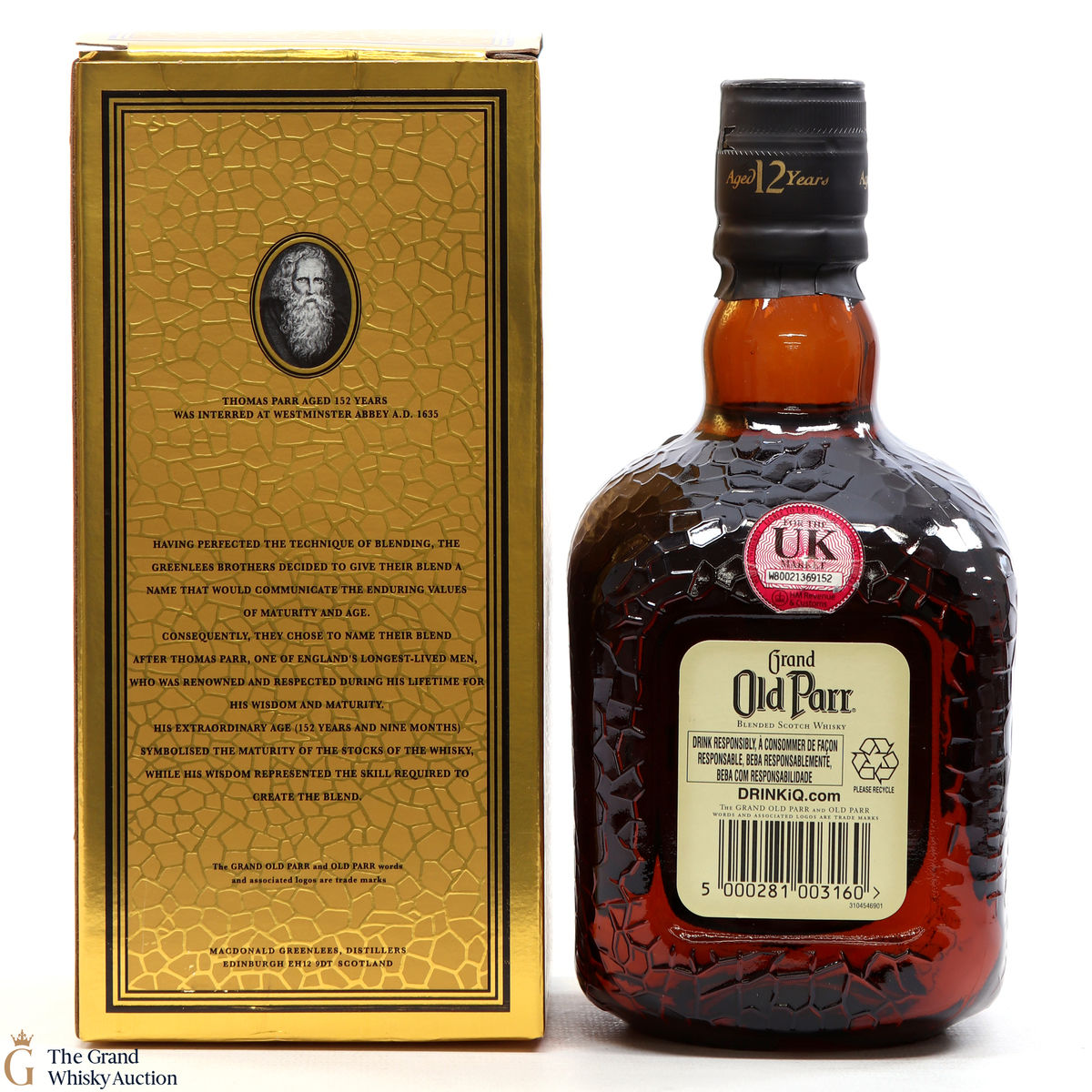 This is an increasingly rare bottling of Old Parr 12 Year Old. This is a 75cl bottling. It is named after Thomas Parr.