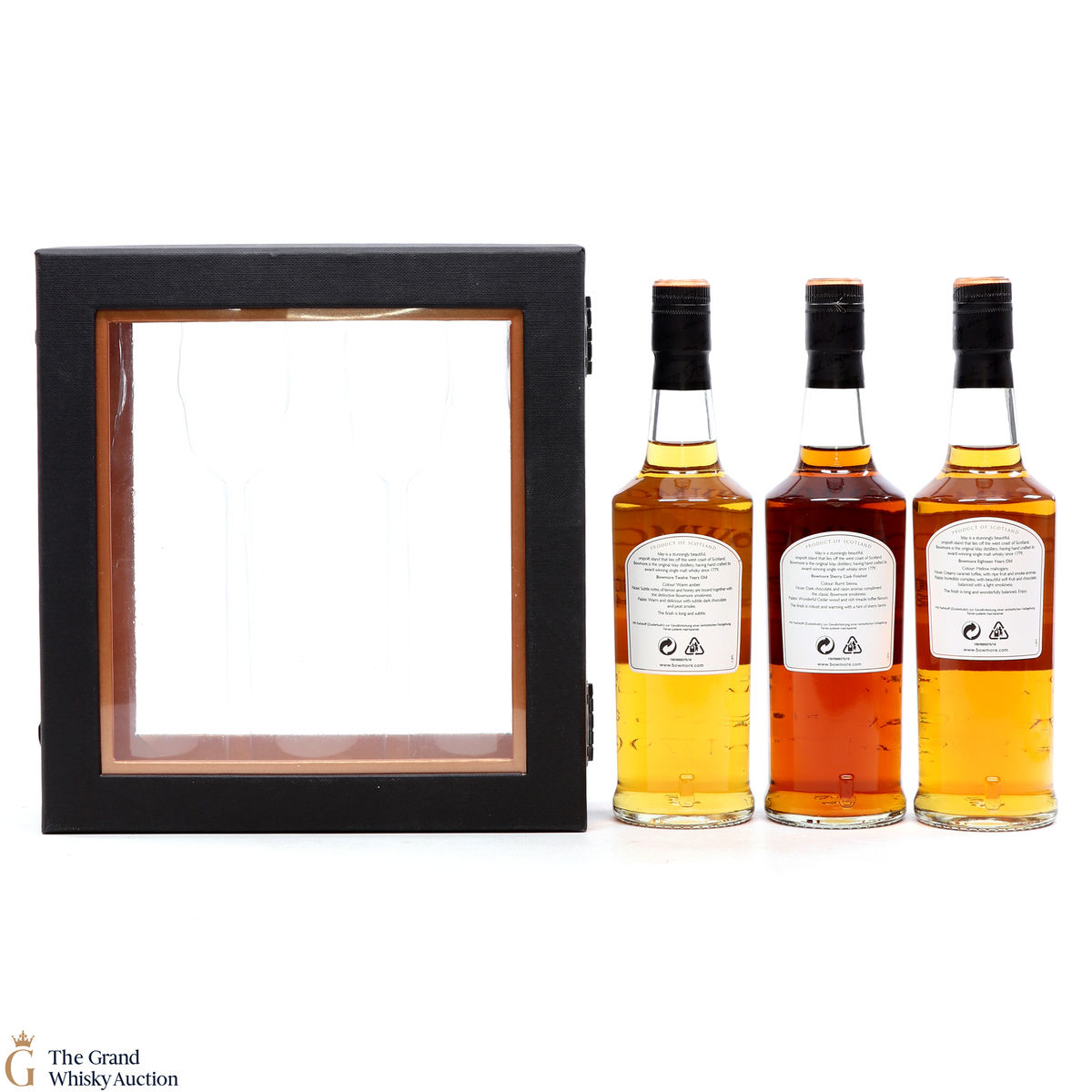 A chance to sample three of the wonders Bowmore offer. This Bowmore gift pack contains miniature bottles of the 12, 15 Darkest and 18-year-old expressions.