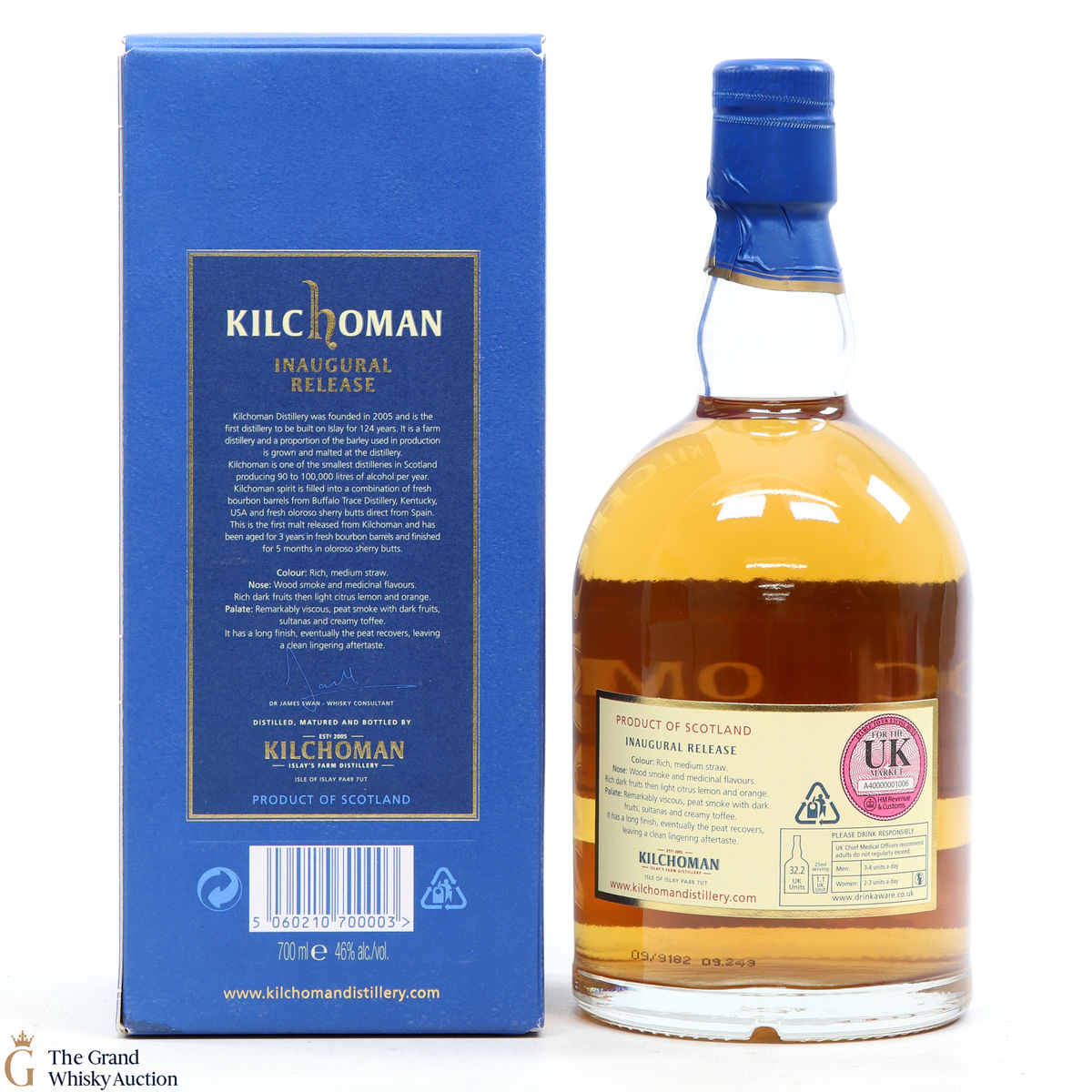 This is the first-ever release of single malt whisky from the Kilchoman Distillery. This Inaugural Release was aged for between 2.5 and 3 years in bourbon casks, before being finished for 6 months in sherry casks. Very good indeed. Malt Advocate rated it with 92 points.