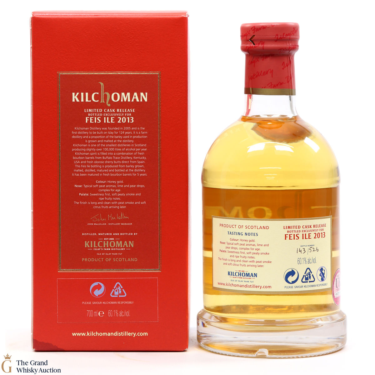A limited fresh bourbon cask release#246 and #247 for Feis Ile 2013 by Kilchoman Distillery. The casks were filled on 22nd May 2008 prior to being bottled on the 22nd May 2013.