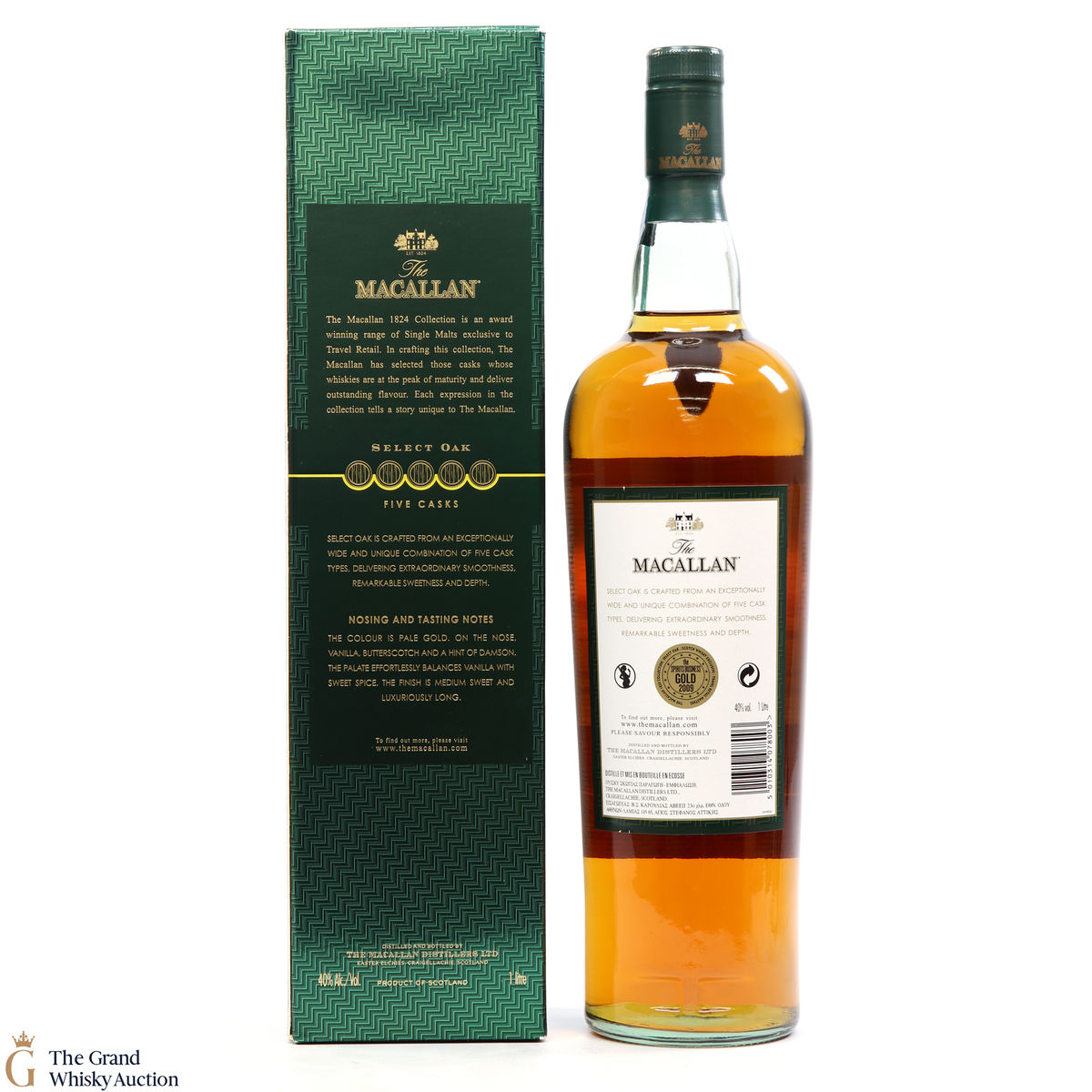 The Macallan Select Oak is crafted from a broad and unique selection of five casks which deliver a great smoothness, sweetness and depth. It is a lighter style of Macallan with sweet notes of butterscotch and vanilla.