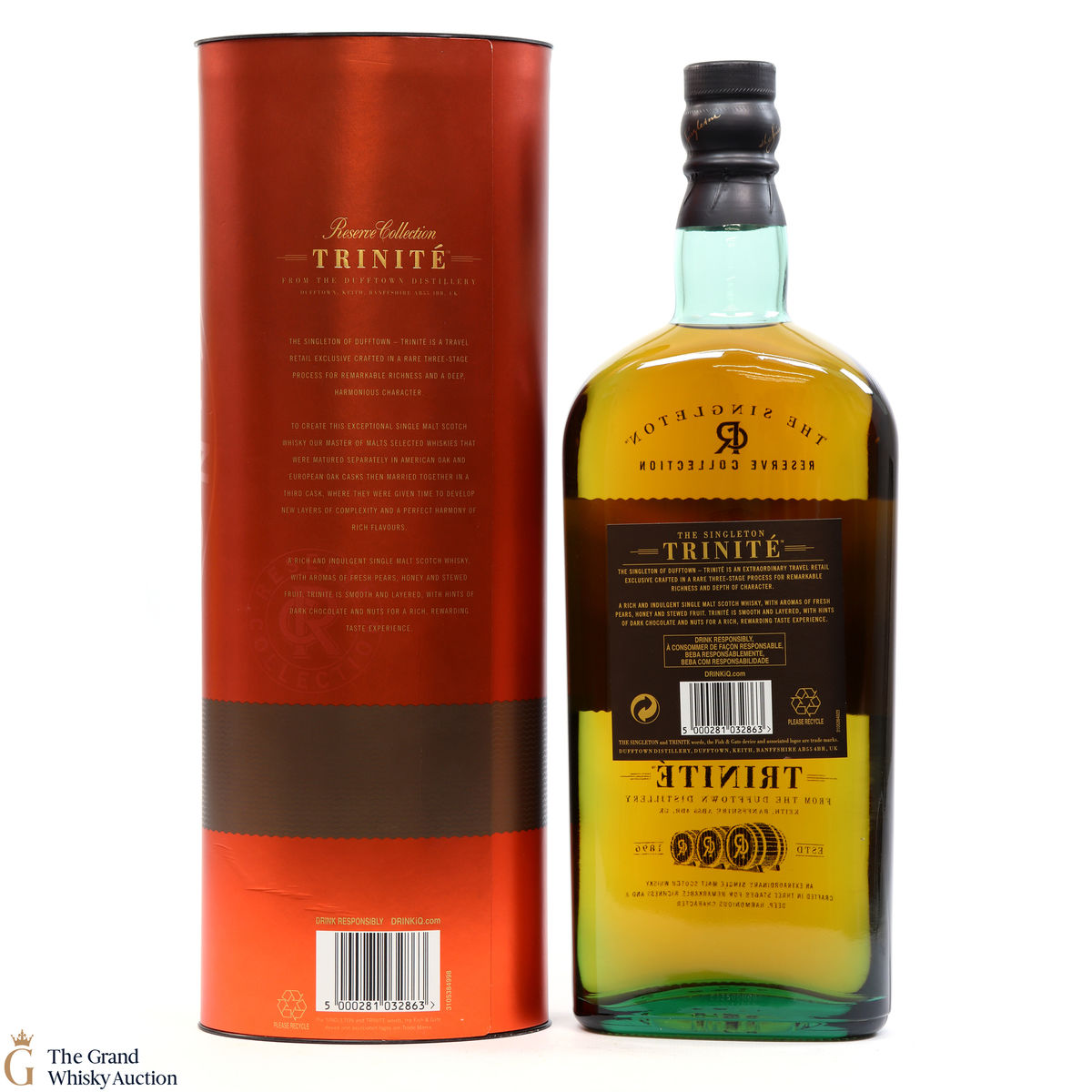 Distilled at Singleton Distillery in Dufftown, the Trinite is a travel retail exclusive crafted in a three-stage process. This single malt was bottled at 40% ABV.