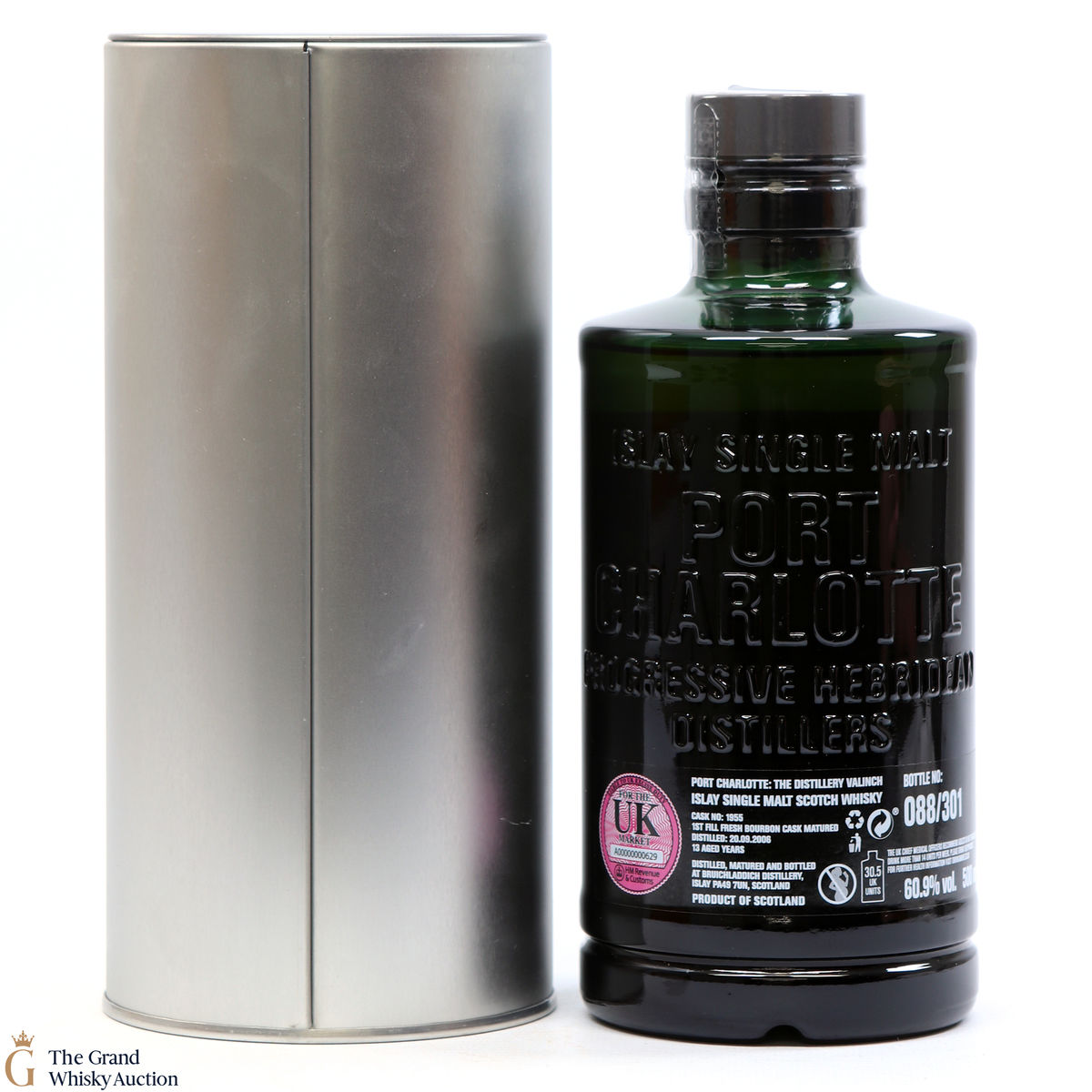 From Bruichladdich, this Port Charlotte Valinch single cask is an 13 year-old distilled in Islay in 2006, matured in 1st fill fresh bourbon barrel #1955. This is a distillery exclusive release of 301 bottles at 60.9% ABV. This is a 50cl bottling.