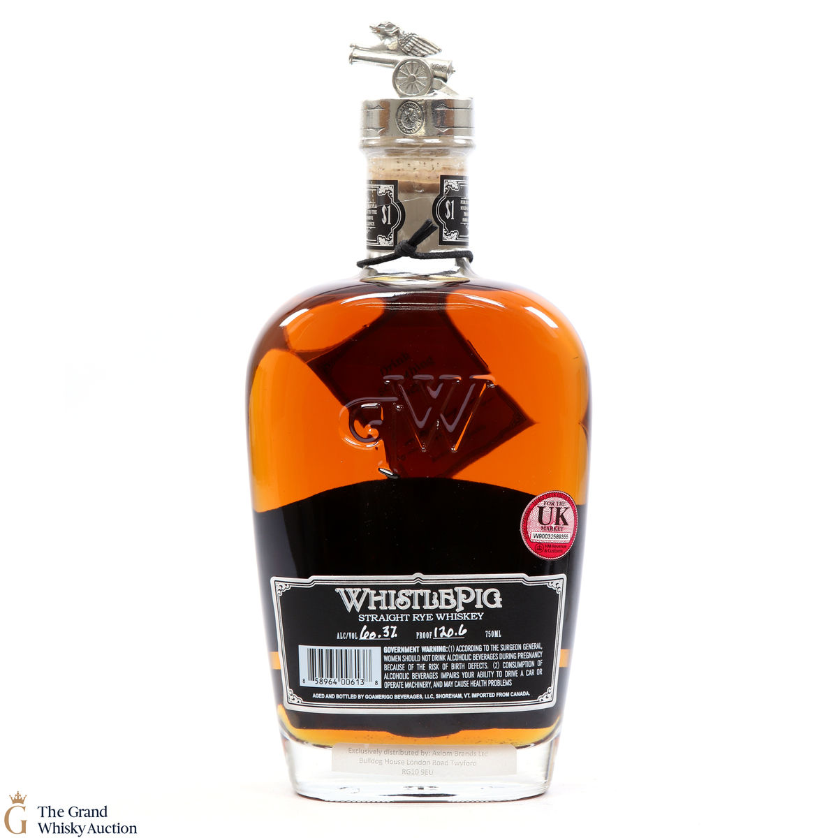 ([%% bidValueExVat|multi_currency %%] ex. VAT)Buyers delivering this bottle to a UK address will pay [%% bidValueAndCommissionWithVat | multi_currency %%] (Hammer price + 12.5% buyer commission + 20% VAT on the hammer price & buyer commission).