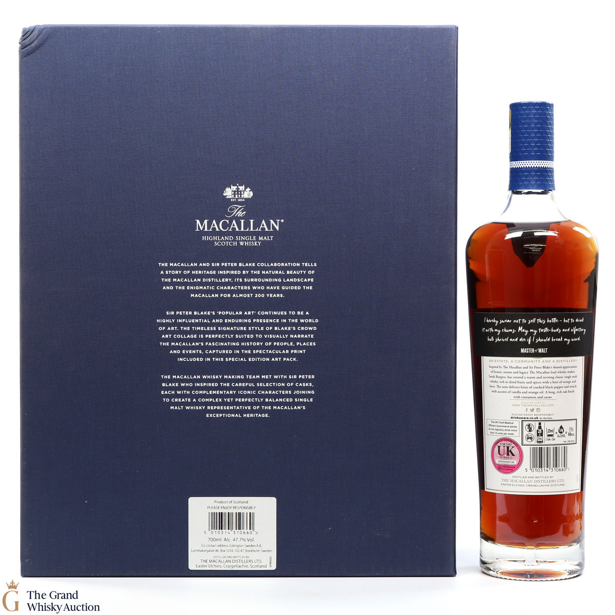 Part of The Anecdotes of Ages Collection, this is an extraordinary art and whisky collaboration with Sir Peter Blake. Being the third collaboration between the Macallan Distillery and Sir Peter Blake, this single malt was created to commemorate Sir Peter Blake's visit to The Macallan Estate. An Estate, a Community and a Distillery tells the story of some of the colourful characters from the distilleries past and present and features a label designed by Sir Peter Blake.