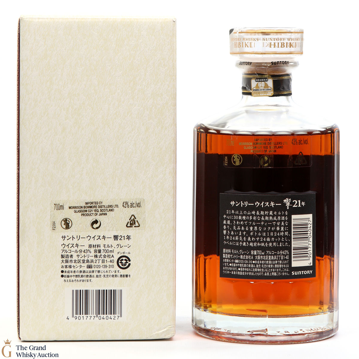 Hibiki 21 Year Old is a very popular blended whisky from Suntory. It is made up of a blend of specially selected mature malt and grain whiskies aged over 21 years. The key Yamazaki sherry casked malt is vatted with other carefully chosen mellow unblended grain whiskies over 21 years old.