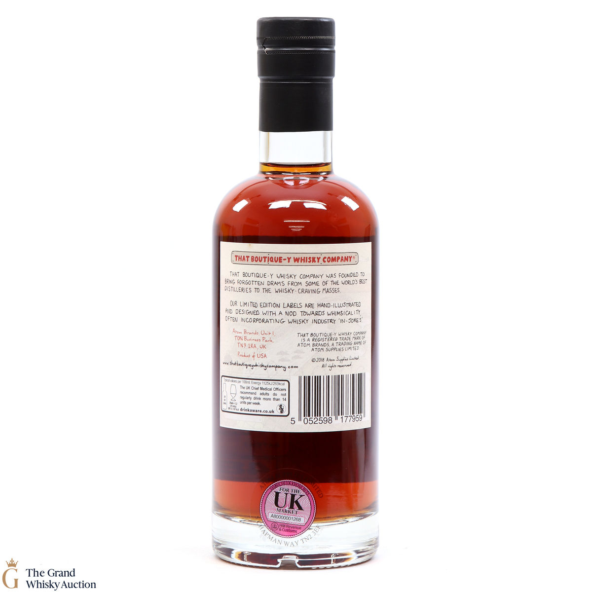Due to the various ages of bottles and their seals, the condition of liquid is at the buyer's discretion and no claim can be lodged against failure/leakage in transit. Loss and breakage cover is available at 3% of the hammer price as standard. If the lot is not insured, no claim can be lodged against the courier or The Grand Whisky Auction for breakage or loss in transit.