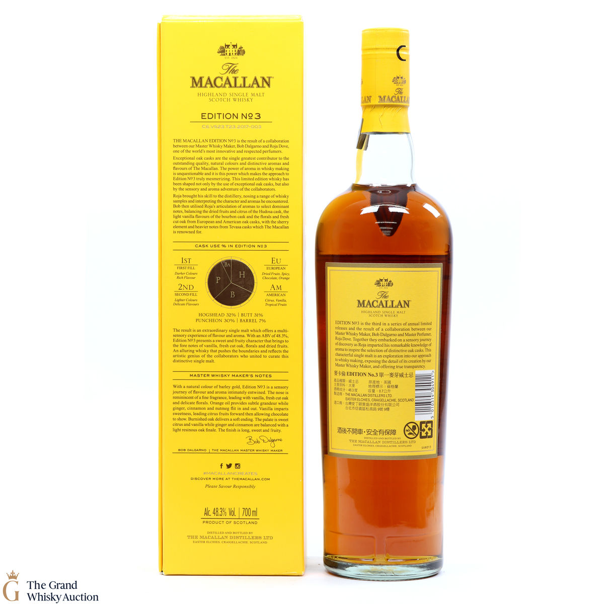 Edition No.3 was a collaboration between master perfumer Roja Dove and master whisky maker Bob Dalgarno. With Dove's remarkable sensory knowledge, Dalgarno shaped the character of Edition No.3 from a combination of European and American oak casks to create a deliciously sweet, single malt with floral notes.