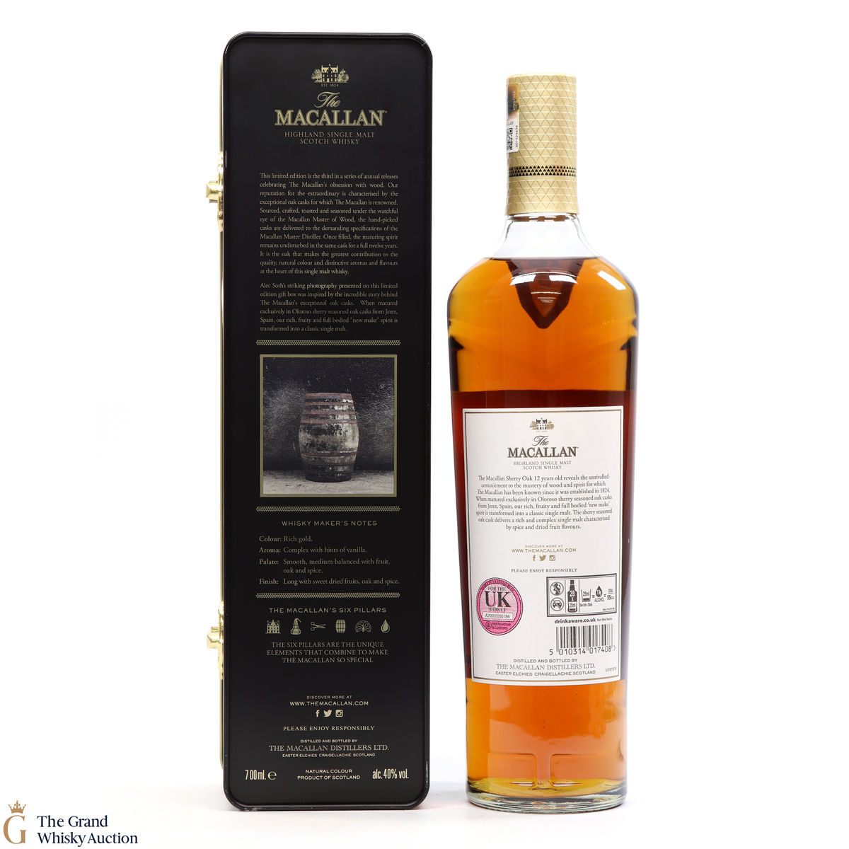 This limited-edition Macallan 12 year old was exclusively matured in sherry seasoned oak casks, from Jerez. It comes in a metal presentation tin featuring an image of a barrel shot by Magnum photographer Alex Soth.