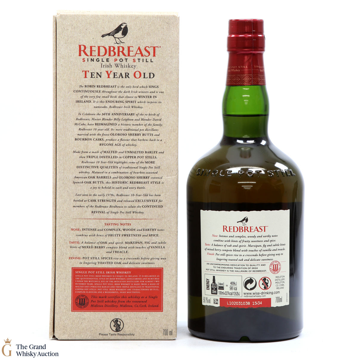Redbreast 10 Year Old is a Bird House Exclusive bottling to celebrate the 30th anniversary of the re-birth of the Redbreast. Matured in a combination of bourbon seasoned American oak barrels and Oloroso sherry seasoned Spanish oak butts before being bottled at cask strength of 59.1% ABV is from batch 1.