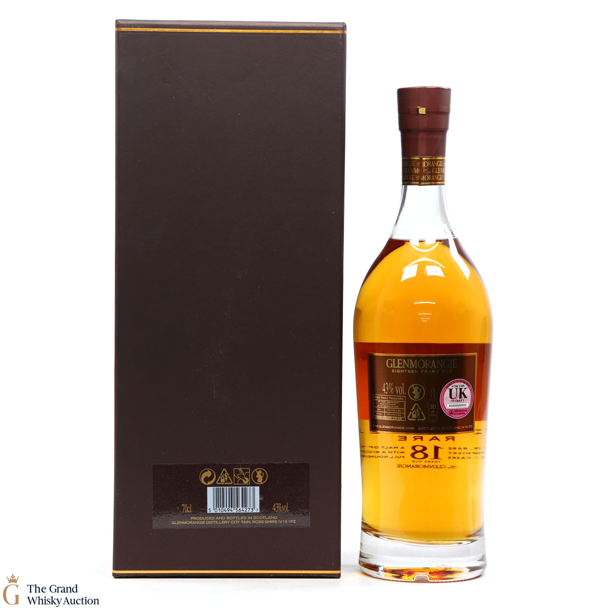 This bottle is an 18 year old Extremely Rare, Highland single malt produced by Glenmorangie. It has been perfected by the sixteen men of Tain who have specially aged this bottle for 18 years in superior oak casks and a period in Oloroso Sherry casks.
