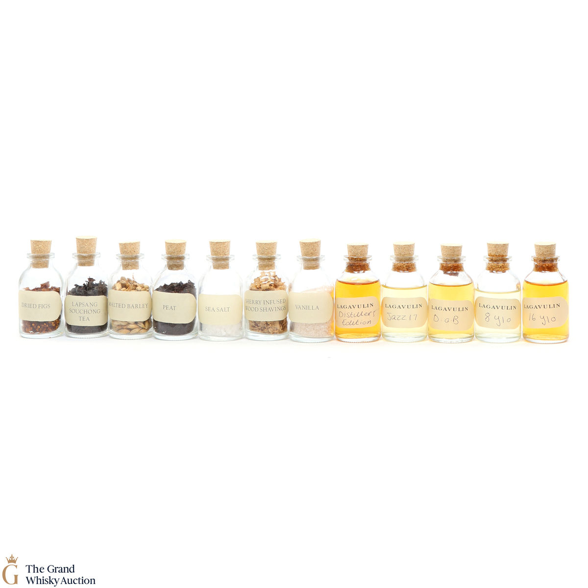 This limited edition Lagavulin 200th Anniversary Tasting Companion Set includes small samples of: