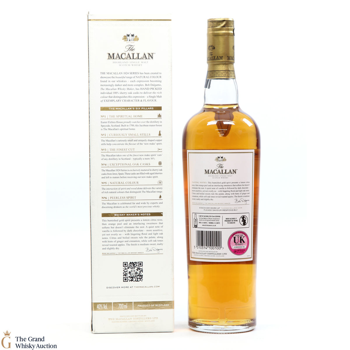 The Macallan 1824 Series celebrates natural colour. The most distinctive and defining characteristic of Macallan is the sherry-seasoned oak casks that are used to mature the whisky. This series shows commitment to 100% natural colour, drawn from wood. The colour of each expression becomes deeper as the range progresses.