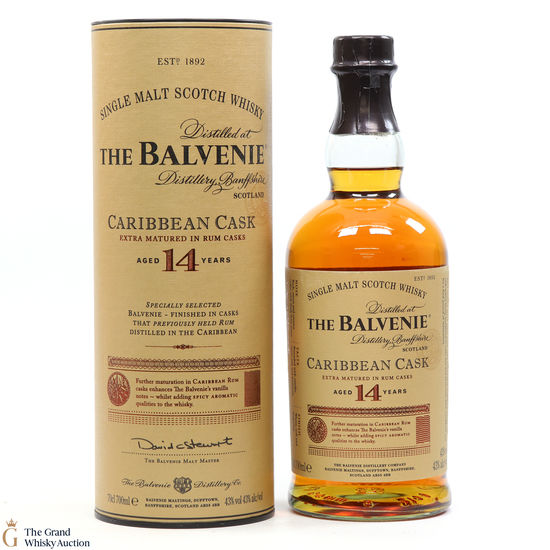 The Balvenie Caribbean Cask 14 year old has been matured in traditional oak whisky casks for 14 years, and then finished in casks that previously held Caribbean rum.