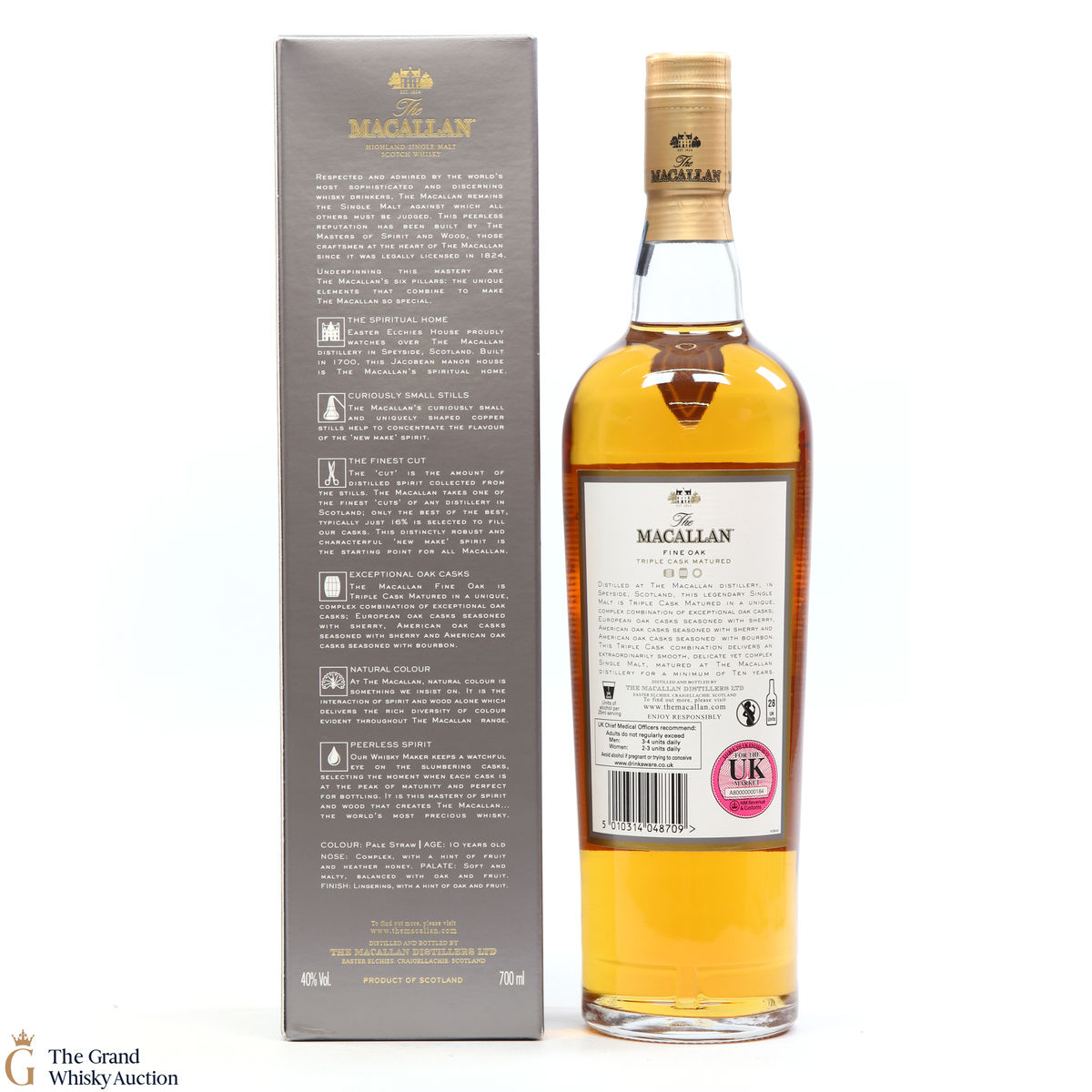 This 10-year-old single malt is part of Macallan's Fine Oak, triple cask matured range. It has been matured for ten years in three oak cask types; Europen oak seasoned with sherry, American oak seasoned with sherry and American oak seasoned with bourbon. This bottling has been discontinued.