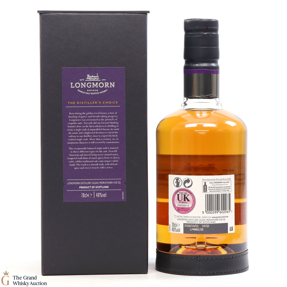 Due to the various ages of bottles and their seals, the condition of liquid is at the buyer's discretion and no claim can be lodged against failure/leakage in transit. Loss and breakage cover is available at 3% of the hammer price as standard. If the lot is not insured, no claim can be lodged against the courier or The Grand Whisky Auction for breakage or loss in transit.