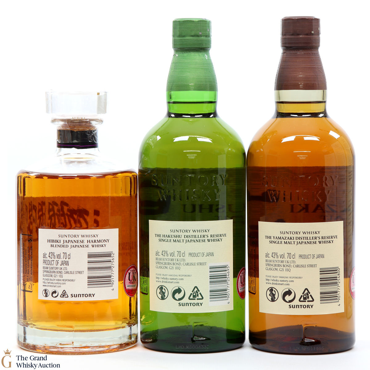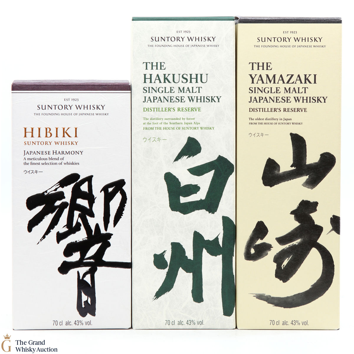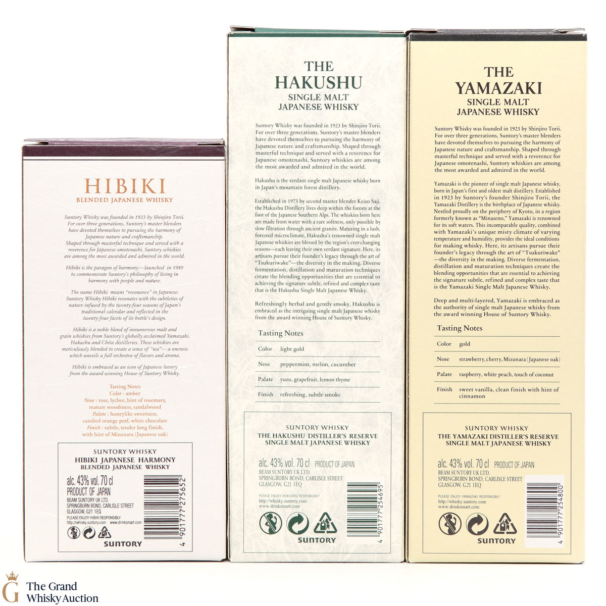 Hibiki - Japanese Harmony: Hibiki Japanese Harmony is made with malt whiskies from the Yamazaki and Hakushu distilleries, as well as grain whisky from the Chita distillery. The whiskies are drawn from 5 different types of cask, including American white oak casks, Sherry casks and Mizunara oak casks. The blend itself was crafted by the Suntory Whisky blending team, led by Master Blender Shingo Torii. An elegant expression, with wafts of honey, orange, a herbaceous touch or two and light oak. 43%, 70cl.