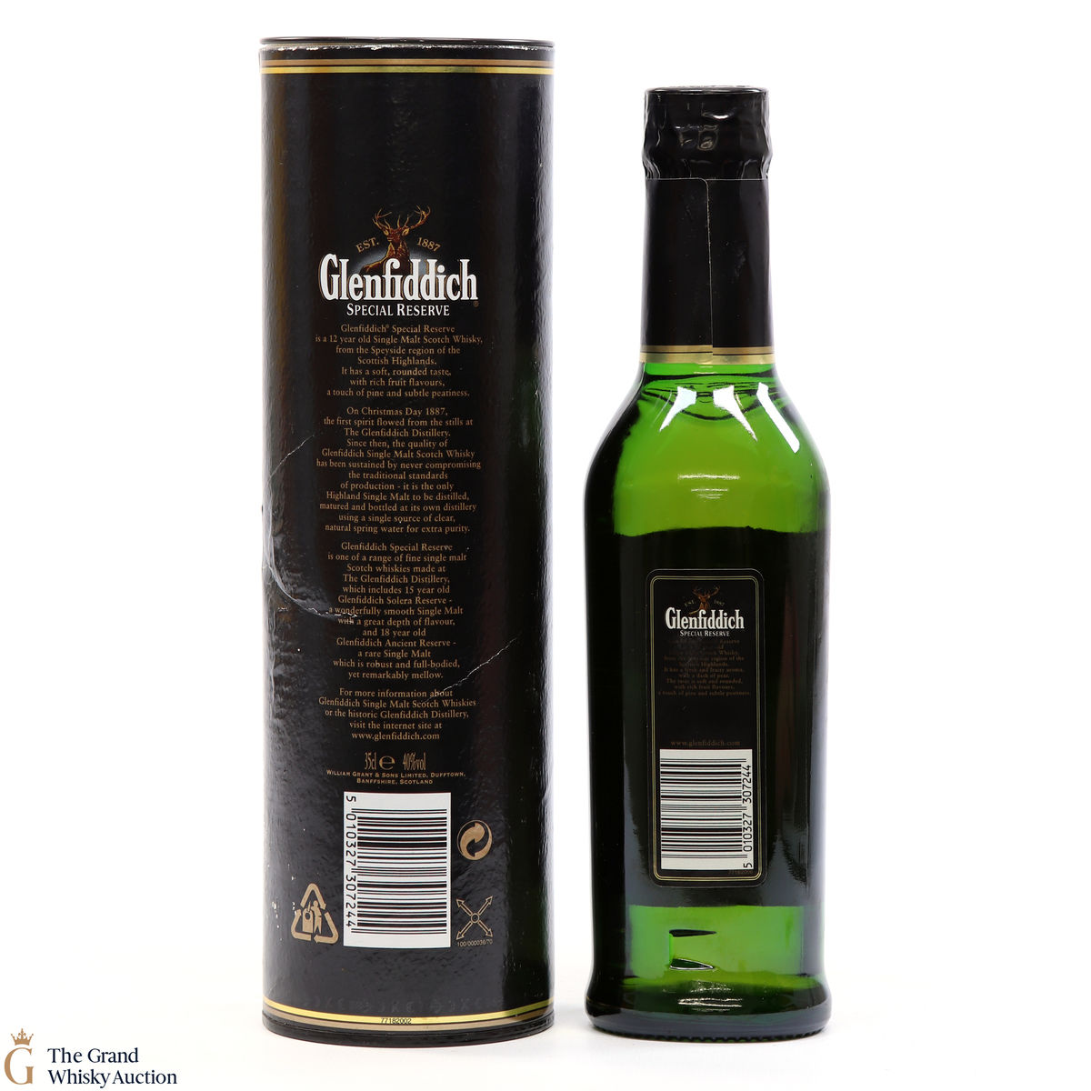 Due to the various ages of bottles and their seals, the condition of liquid is at the buyer's discretion and no claim can be lodged against failure/leakage in transit. Loss and breakage cover is available at 3% of the hammer price as standard. If the lot is not insured, no claim can be lodged against the courier or The Grand Whisky Auction for breakage or loss in transit.