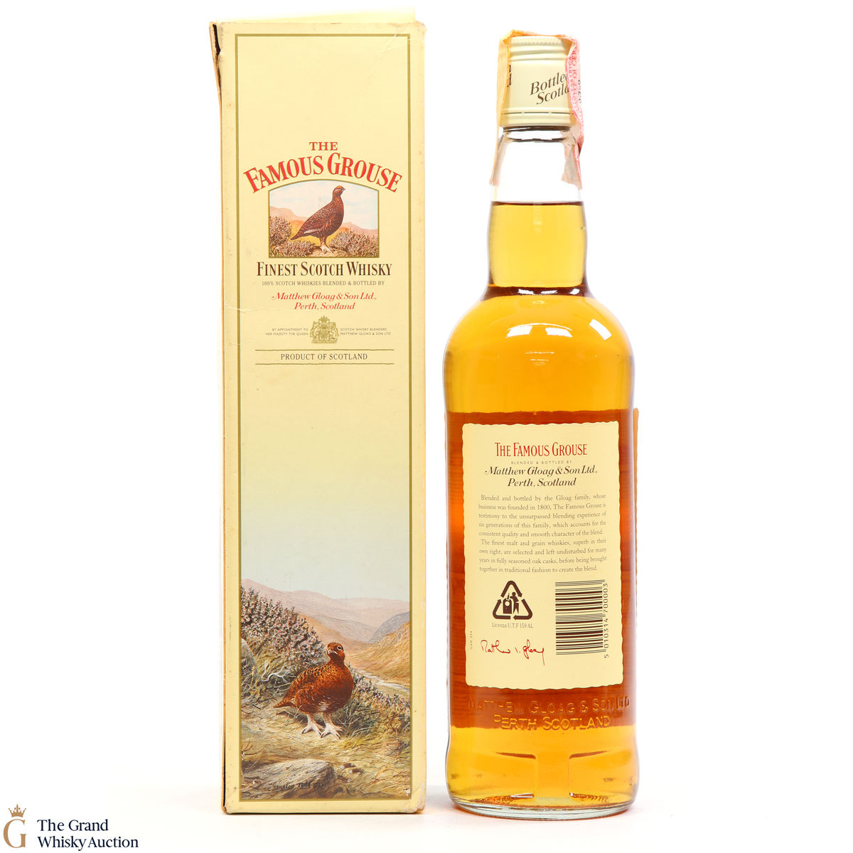 Famous Grouse blended scotch whisky was first produced by Matthew Gloag & Son Ltd in 1896, and is currently produced and owned by The Edrington Group.
