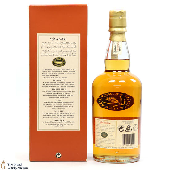 This 10 year old is an older style bottling from Glenkinchie Distillery, that comes presented in the famous orange box - with the classic malt stamp on the front of the box. The Glenkinchie 10 year old has since been replaced by the 12 year old.