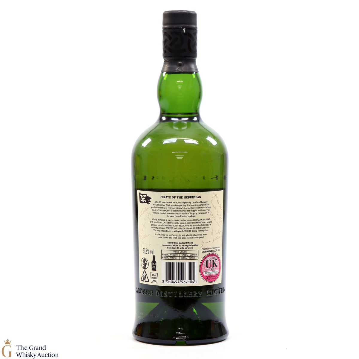 A bottling in honour of the legendary Distillery Manager and Committee Chairman Mickey who is departing after a great 13 years. Captain of the good ship, he is now retiring and so this special bottle has been created to commemorate his service. A special treasure indeed fit for the saltiest of seadogs.