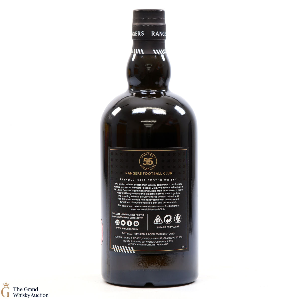 Glasgow-based Douglas Laing created the special release dubbed Rangers Champions 55. The blended malt is created from 55 Single Casks of aged Highland Single Malt to represent a world record 55 league titles and expertly married them together.
