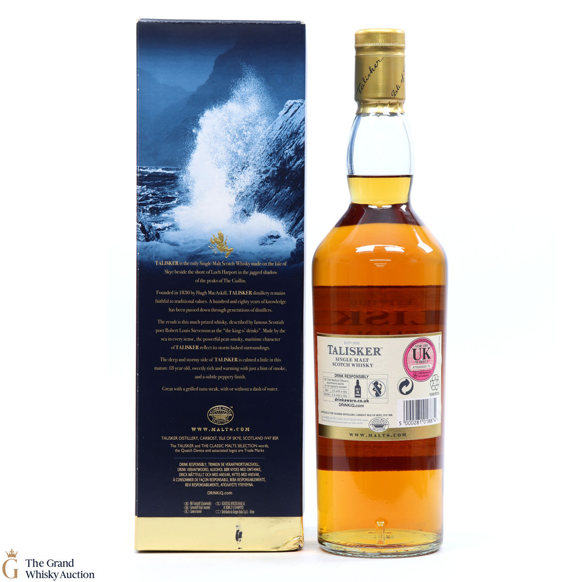 Time has mellowed but not tamed this powerful 18 year old Talisker, made beside Loch Harport in the shadow of the Cuillin range. A rich, sweet nose introduces familiar, smoky maritime aromas. Full-bodied, this smooth malt open sweetly, then becomes more assertive, with a whiff of smoke. It has an unmistakeable, richly warming finish, more subtle here than in the 10 year old.