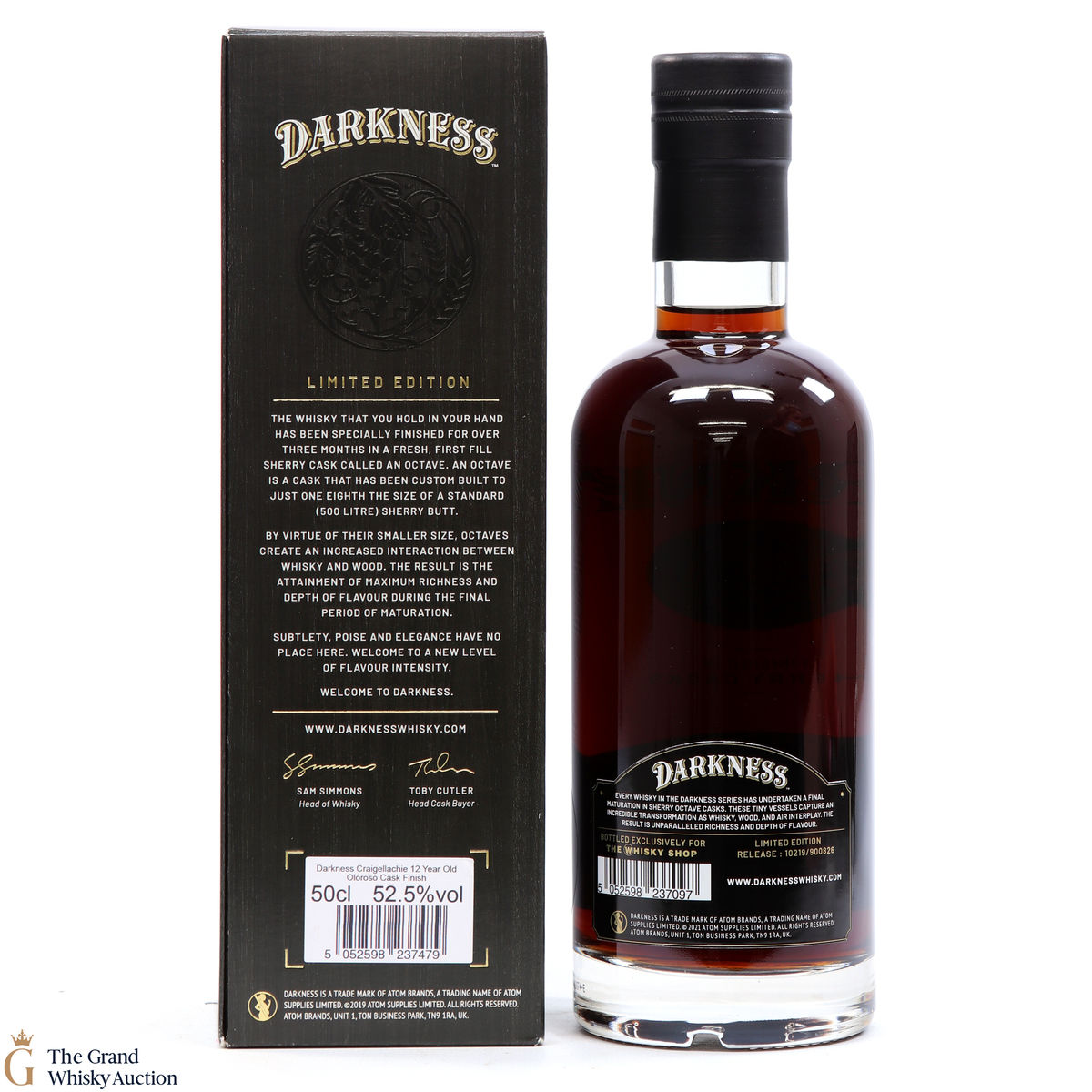This Darkness independent release of a 12-year-old Craigellachie single malt. There was a finishing period in a Olosoro cask! The smaller cask is said to increase the interaction between the whisky and the cask.