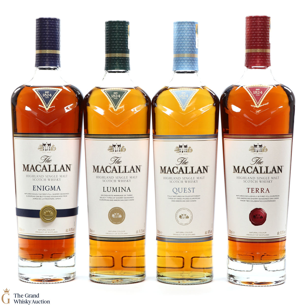- Enigma: Enigma is at the top end of Macallan's Quest Collection drawn exclusively from European oak Sherry seasons casks from one cooperage in Jerez de la Frontera, Spain. 70cl, 44.9% ABV.