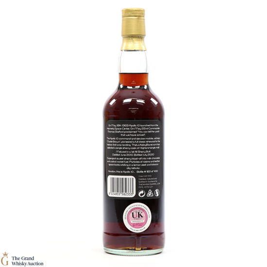 Dedicated to the Apollo 10 landing on the 18th of May 1969, this single malt was distilled at Edradour Distillery in 2010 where it underwent maturation for 10 years in a 1st fill sherry butt that was handpicked by The Whisky Barrel. Bottled in July 2020, this rare malt is one of only 400 produced.