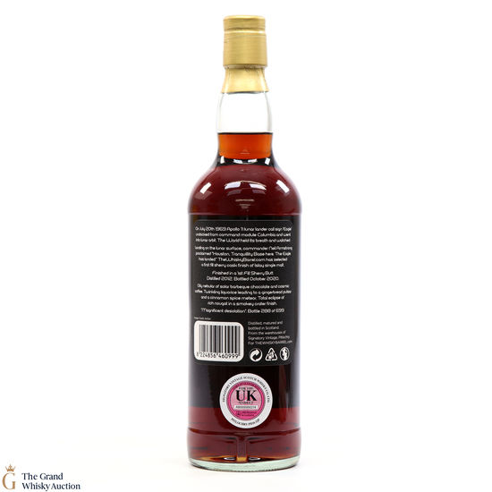 This 8 year old is from Caol Ila. Distilled in 2012 and bottled in 2020.This cask was finished in a first fill sherry butt and celebrates the eagle Apollo 11 mission in 1969.