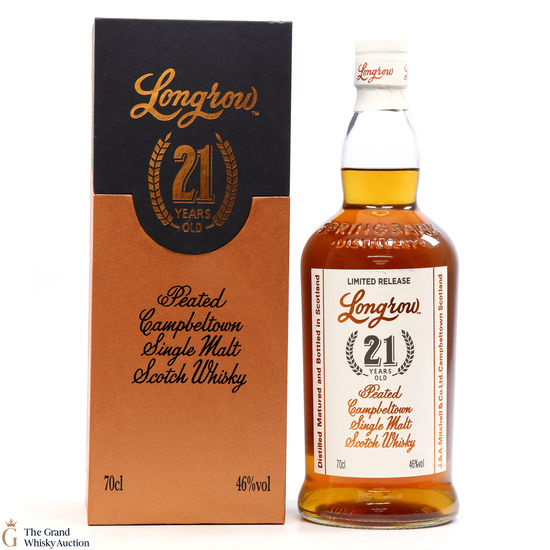 This 21-year-old Longrow, is a limited edition from Springbank Distillery in Campbeltown. This is one of only 3,600 bottles produced after maturation in sherry and bourbon casks.