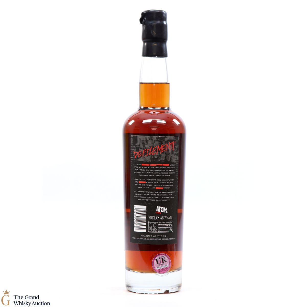 Due to the various ages of bottles and their seals, the condition of liquid is at the buyer's discretion and no claim can be lodged against failure/leakage in transit. Loss and breakage cover is available at 3% of the hammer price as standard. If the lot is not insured, no claim can be lodged against the courier or The Grand Whisky Auction for breakage or loss in transit.
