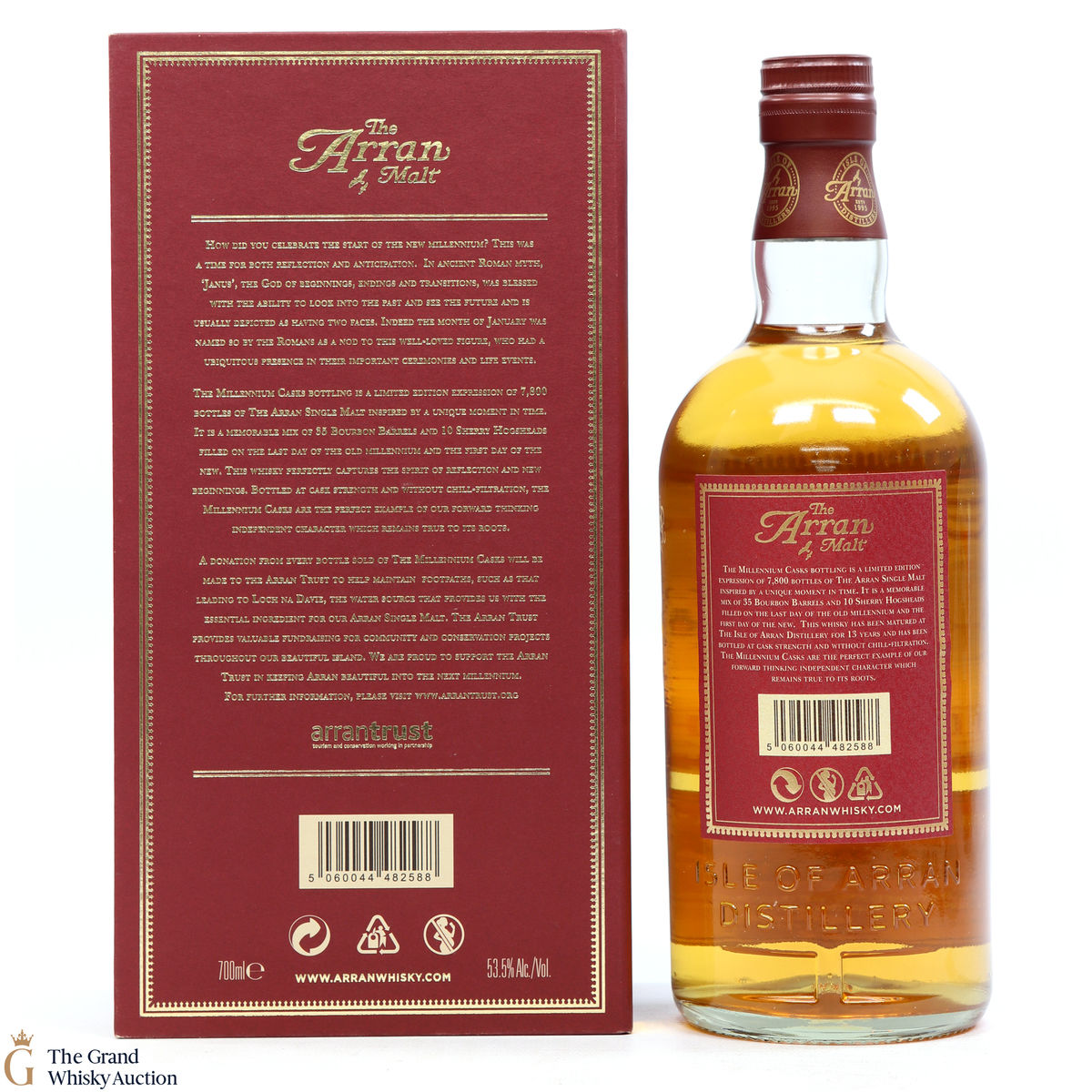 10 sherry hogsheads and 35 bourbon barrels were used in the making of the Arran Millennium Cask.