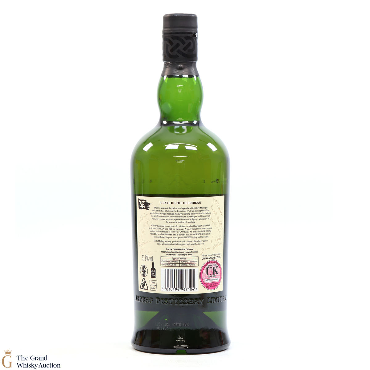 A bottling in honour of the legendary Distillery Manager and Committee Chairman Mickey who is departing after a great 13 years. Captain of the good ship, he is now retiring and so this special bottle has been created to commemorate his service. A special treasure indeed fit for the saltiest of seadogs.