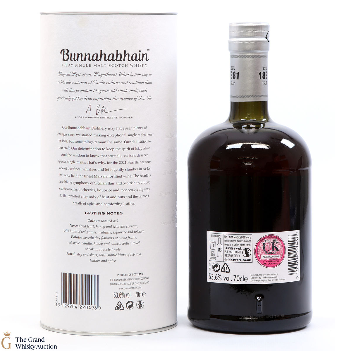 For Feis Ile 2021, Bunnahabhain Distillery released this unique bottling. Distilled back on the 8th of October 2001, this single malt was finished in a cask that once held Marsala fortified wine resulting in a combination of Sicilian flair and Scottish tradition. Bottled on the 19th of January 2021, this is one of only 1333 bottles produced.
